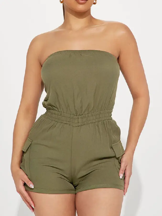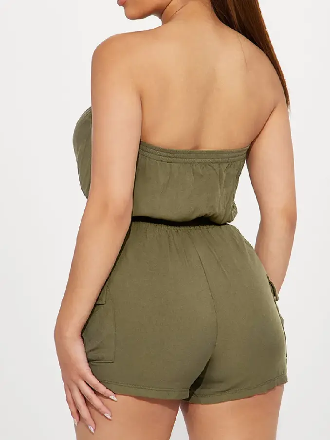 Solid Color Wrapped Strapless One Piece Rompers with Pockets