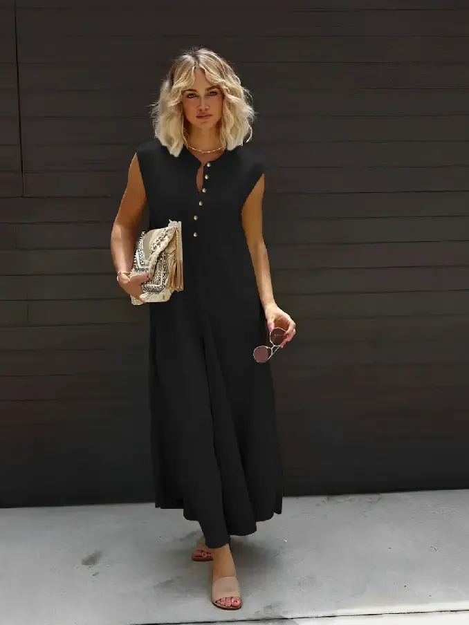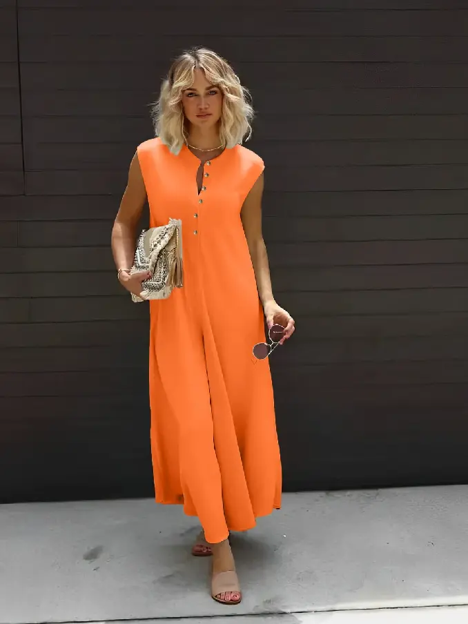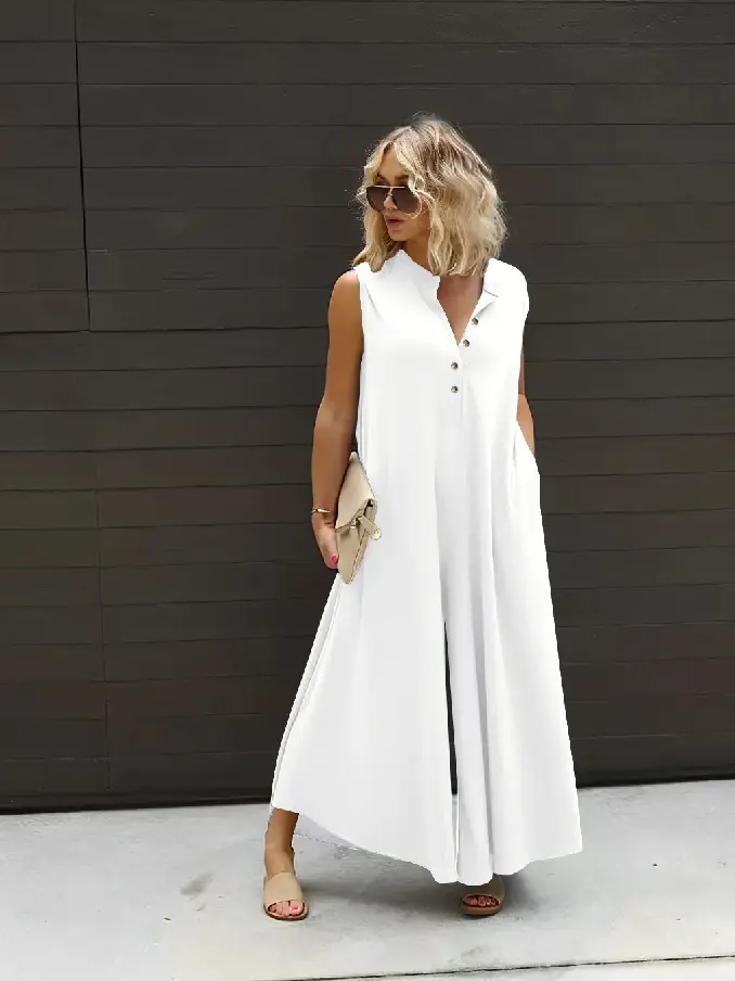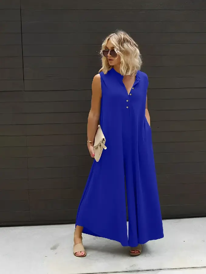 Embrace casual elegance with our Plus Size Women’s Casual Button Sleeveless Jumpsuit. Designed with both style and comfort in mind, this jumpsuit offers a flattering fit that complements every curve while keeping you effortlessly chic.