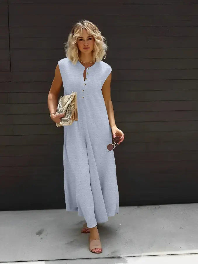 Plus Size Women's Casual Button Sleeveless Jumpsuit