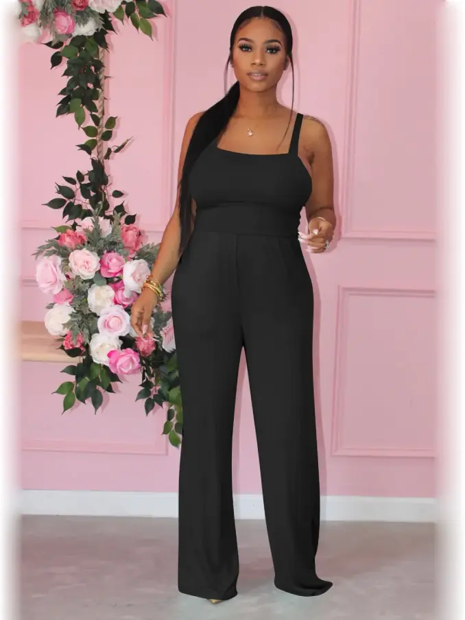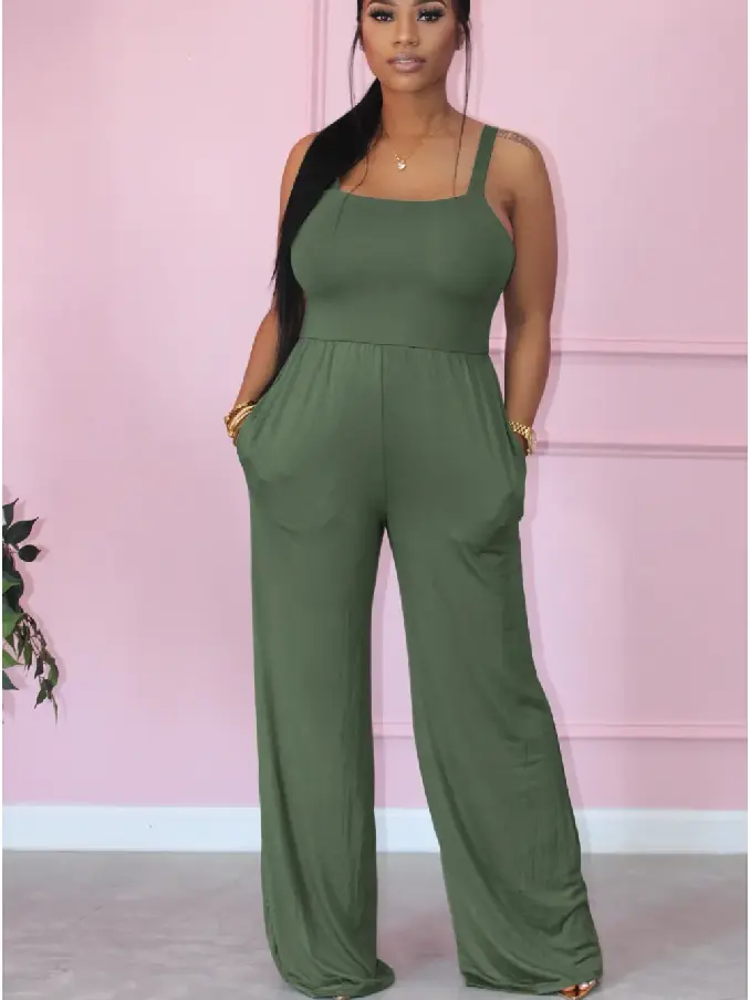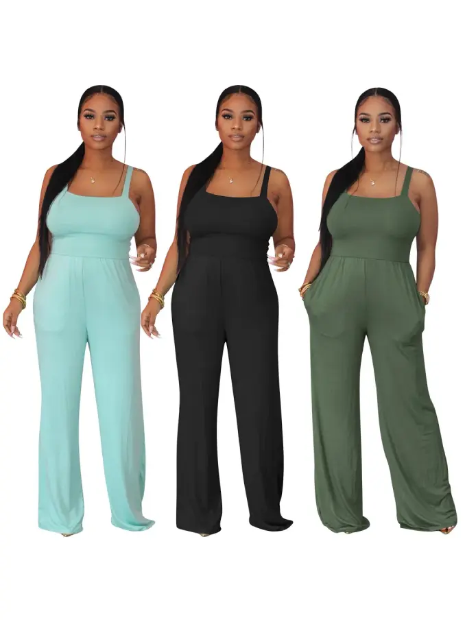 Women Solid Sling Pocket Straight Leg Jumpsuit
