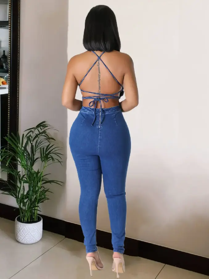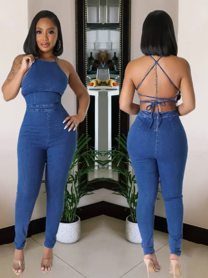 Women's Denim Jumpsuits Spaghetti Strap Sleeveless One Piece Jumpsuit Pants