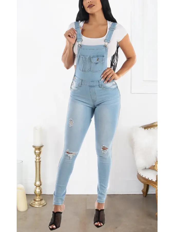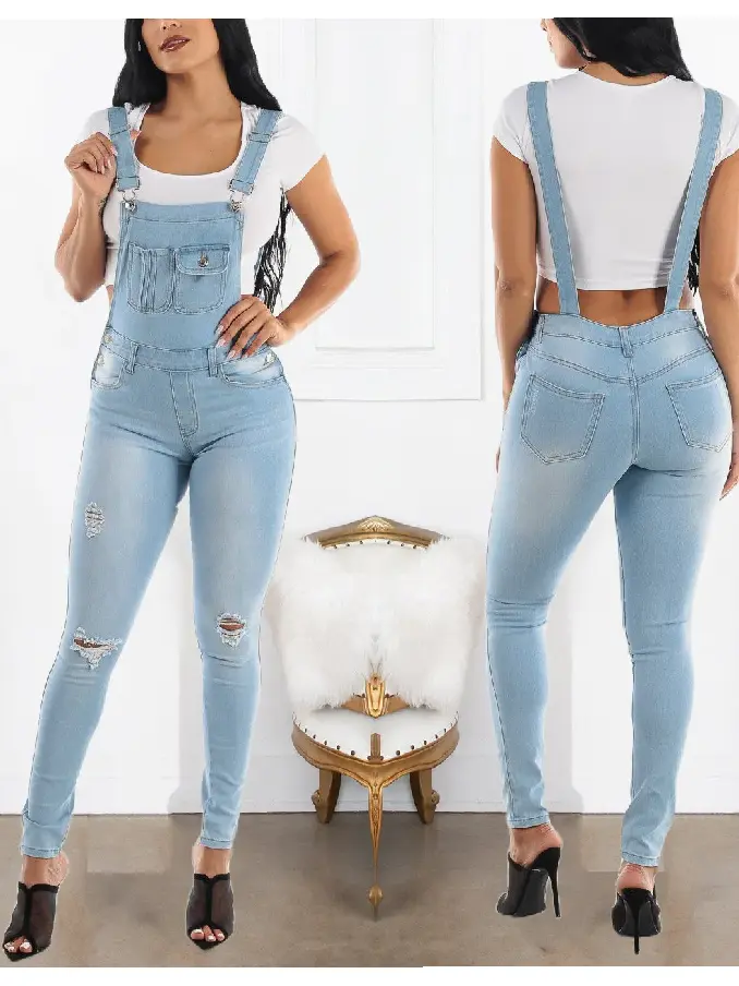 Elevate your casual style with our Women’s Ripped Jeans Suspender Spaghetti Strap Blue Bodycon Casual Overalls Jumpsuit. This trendy jumpsuit combines the laid-back charm of overalls with a modern bodycon fit, offering a chic and contemporary twist on a classic favorite.