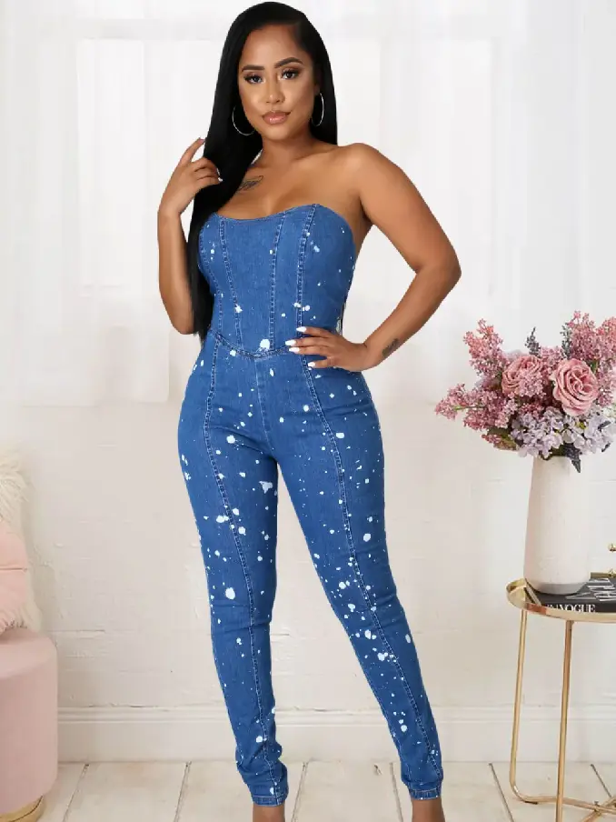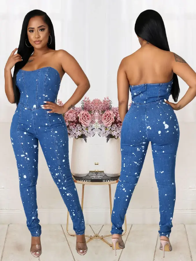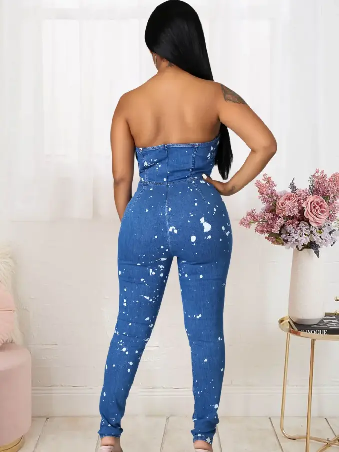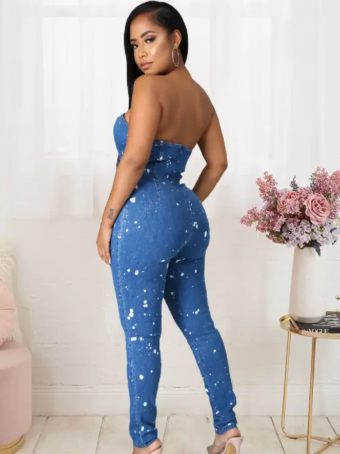Turn heads and make an entrance with our Strapless Meet Me At Nine Jumpsuit. This chic and sophisticated one-piece combines a strapless design with a tailored silhouette, making it the perfect choice for evening events, special occasions, or a stylish night out.