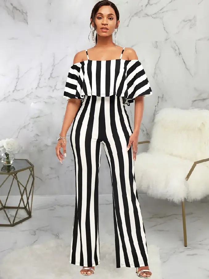 Embrace effortless summer style with our Summer Women’s Striped Short-Sleeved Off-the-Shoulder Straps Loose Wide-Leg Jumpsuit. This breezy, fashion-forward jumpsuit combines playful stripes with a relaxed silhouette, making it the ultimate choice for warm-weather adventures and laid-back outings.