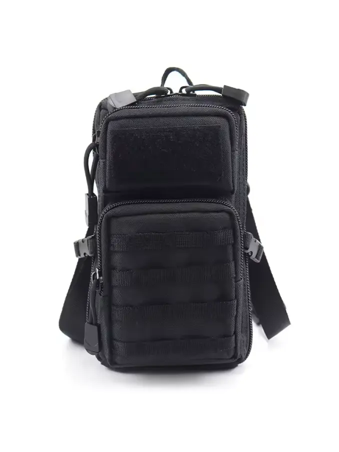 Discover our Factory Price Waterproof Black Tactical Bag, designed for versatility and durability. Featuring a shoulder strap, MOLLE system, phone pouch, and waist bag functionality, it’s perfect for packing and on-the-go organization