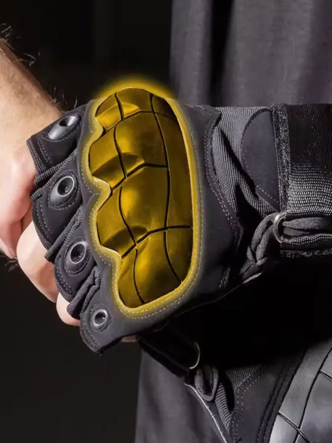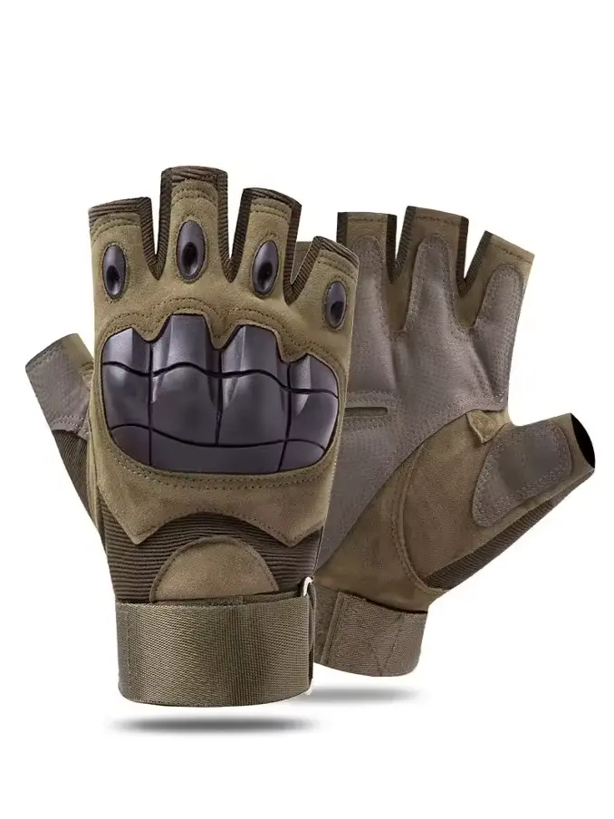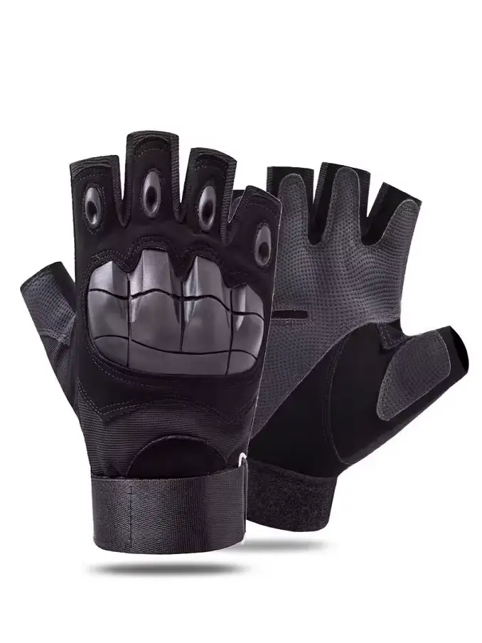 Enhance your grip and protection with our Half Finger Tactical Outdoor Gloves. Featuring a protective soft shell rubber knuckle and reinforced fingers backside, these gloves are designed for durability and comfort during intense activities