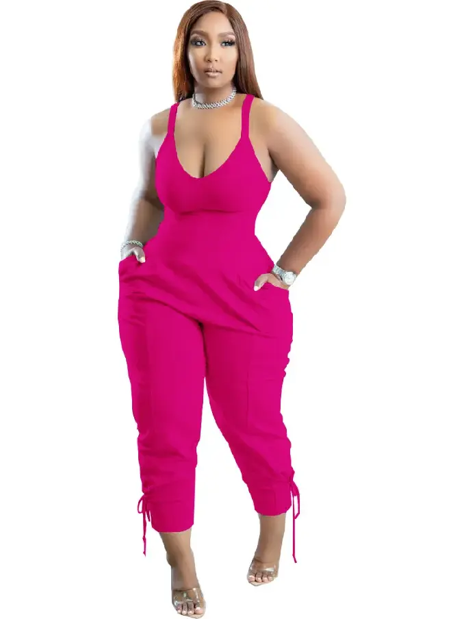 Elevate your casual wardrobe with our Rose Casual Solid Split Joint Spaghetti Strap Sleeveless Jumpsuit. Designed for effortless style and comfort.