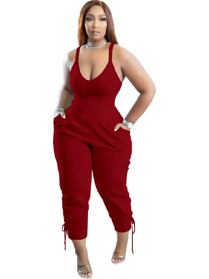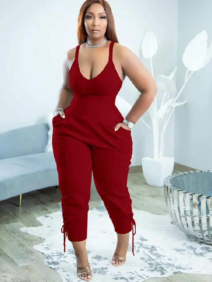 Discover the perfect blend of elegance and ease with our Wine Red Casual Solid Split Joint Spaghetti Strap Sleeveless Jumpsuit. This stylish piece is designed to enhance your wardrobe with.