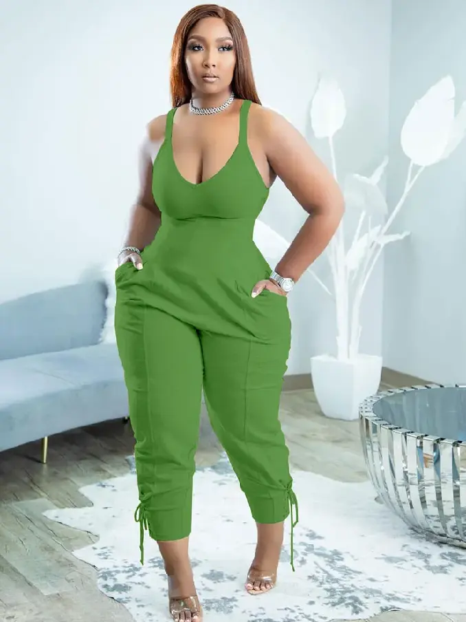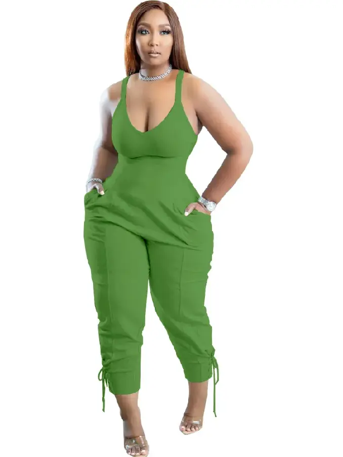 Refresh your wardrobe with our Fruit Green Casual Solid Split Joint Spaghetti Strap Sleeveless Jumpsuit. Designed to blend vibrant color with contemporary style.