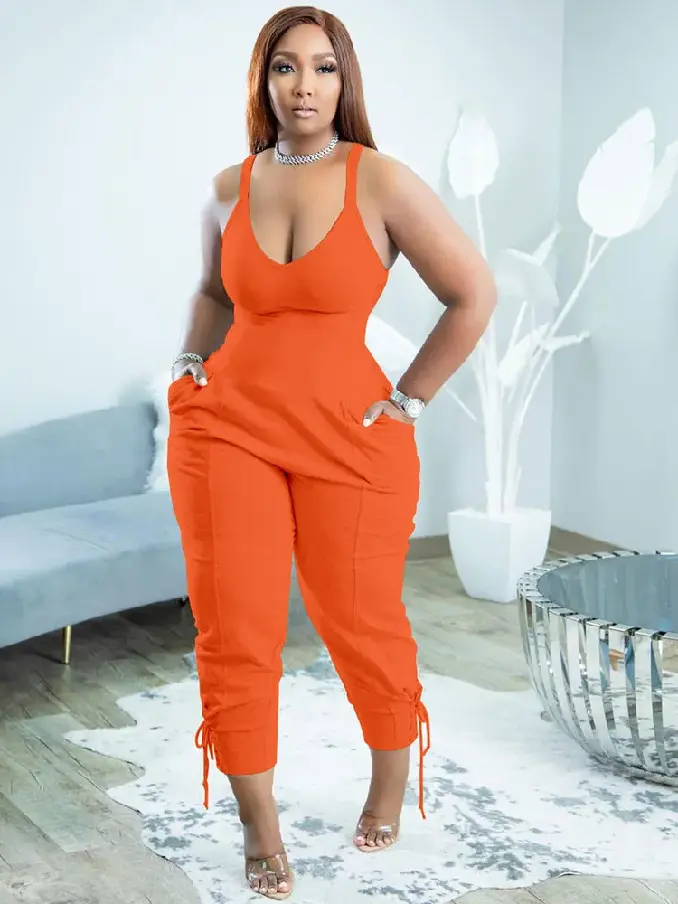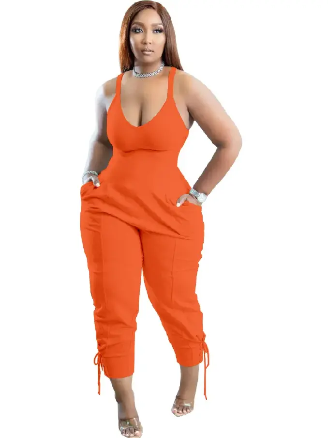 Brighten up your wardrobe with our Orange Casual Solid Split Joint Spaghetti Strap Sleeveless Jumpsuit. This eye-catching piece combines effortless style with a pop of color.