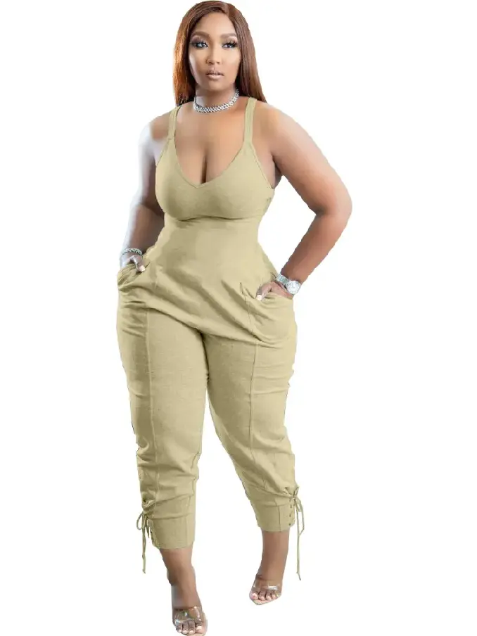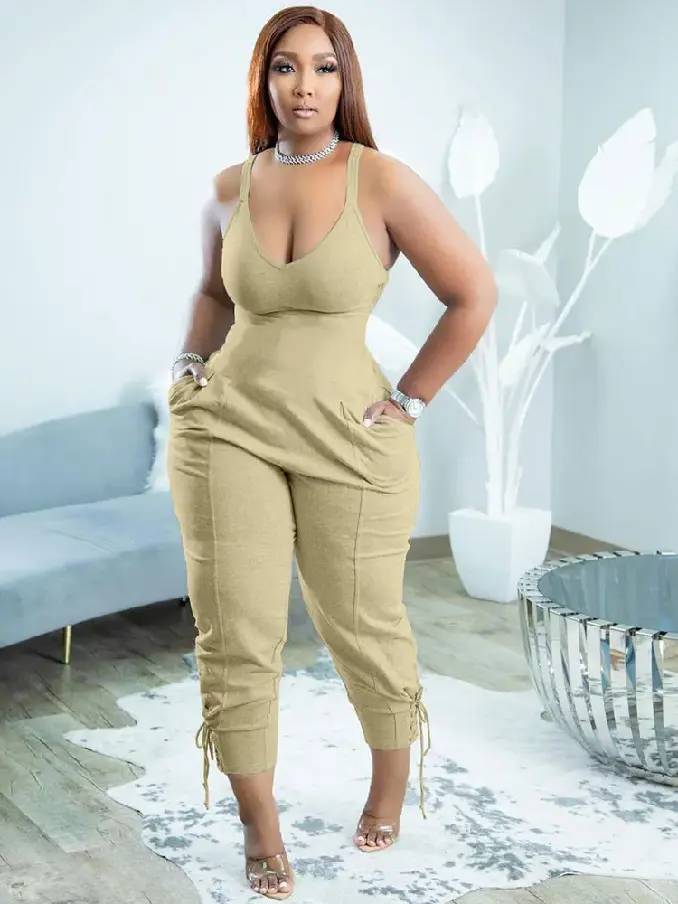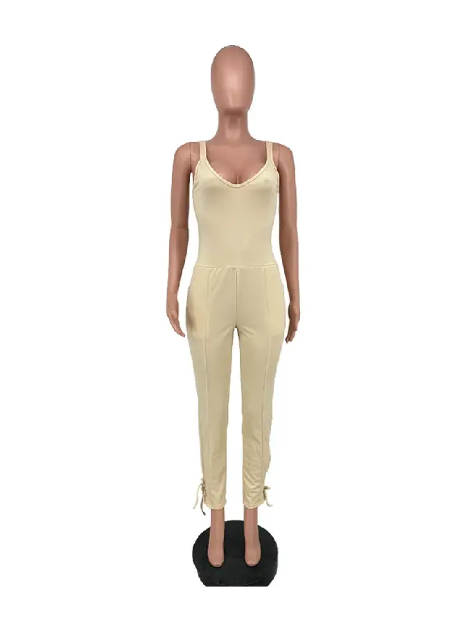 Add a touch of understated elegance to your wardrobe with our Apricot Casual Solid Split Joint Spaghetti Strap Sleeveless Jumpsuit. Designed for both comfort and style.