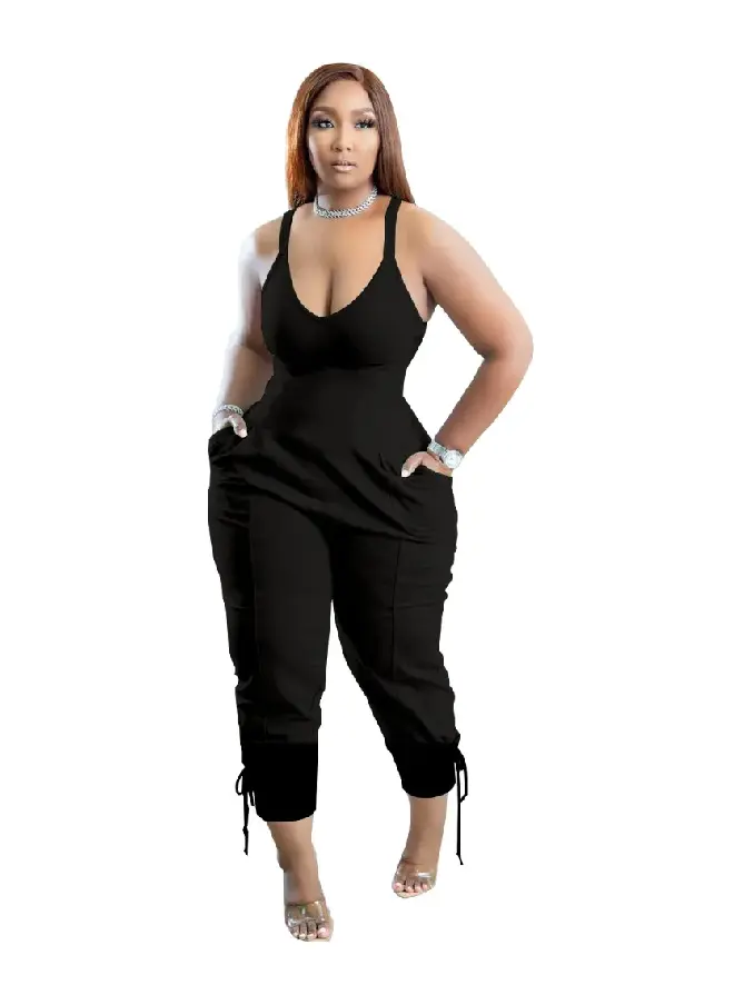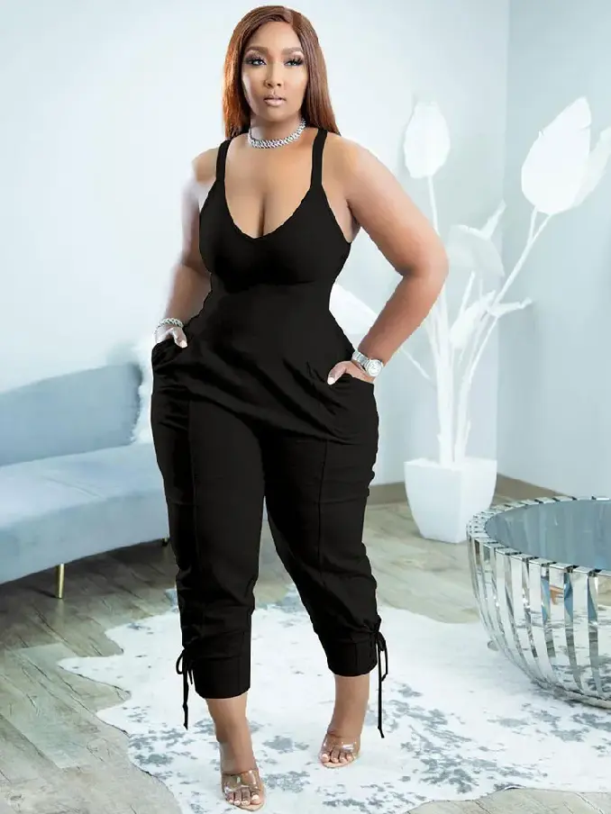 Elevate your everyday style with our Black Casual Solid Split Joint Spaghetti Strap Sleeveless Jumpsuit. Perfectly blending classic sophistication with modern flair