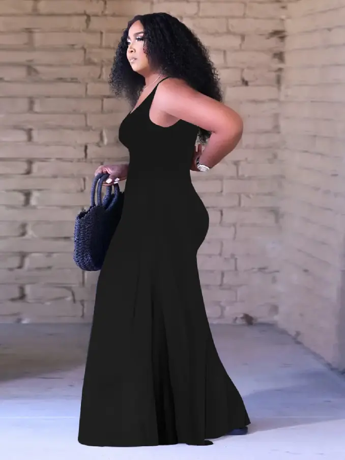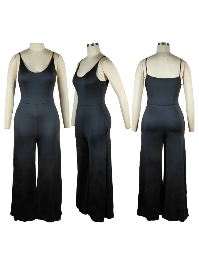 Make a bold statement with our Solid Color Blue Pockets Nightclub Straps Jumpsuit with Wide Legs. Designed for impact and style.