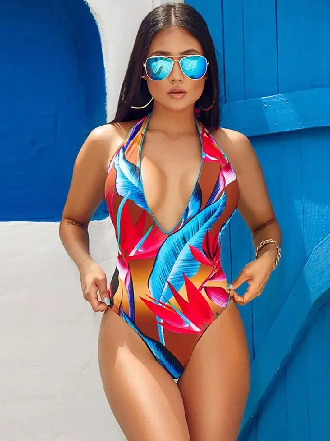 Dive into style and sophistication with our Women’s Printed Halter Backless One-Piece Swimsuit Romper. Designed for the modern woman who craves both comfort and chicness, this swimsuit romper combines the best of swimwear and casual fashion.