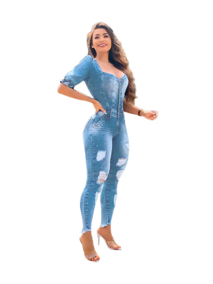 Step out in style with our Casual Puff Sleeve Denim Jet White Ripped Jumpsuit—a standout piece that combines relaxed comfort with edgy flair. Perfect for those who love to make a statement without sacrificing ease, this jumpsuit is designed for versatile fashion.