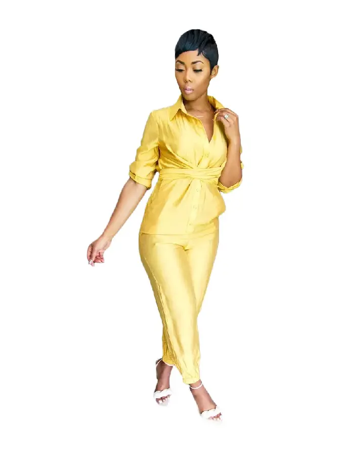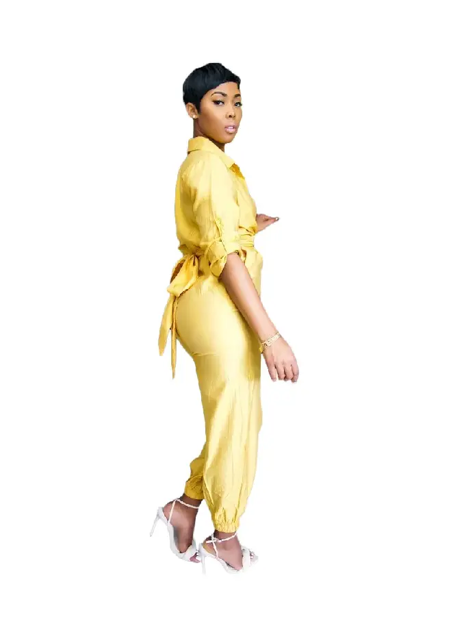 Casual Yellow Button Loungewear Jumpsuit Women's Clothing Lounge Sets