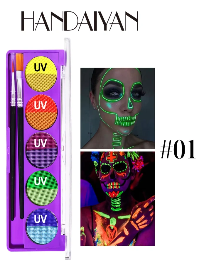 Unleash your creativity with HANDAIYAN’s Face Paint Palette, the ultimate accessory for any Halloween party or promotional event. This multi-color palette is designed for face painting, featuring a waterproof yet washable formula that ensures your artistic expressions stay put while also allowing for easy removal. Whether you’re transforming into a spooky character or showcasing vibrant designs, HANDAIYAN’s palette offers both quality and versatility for all your face painting needs. Dive into the world of color and make a statement with every brushstroke!
