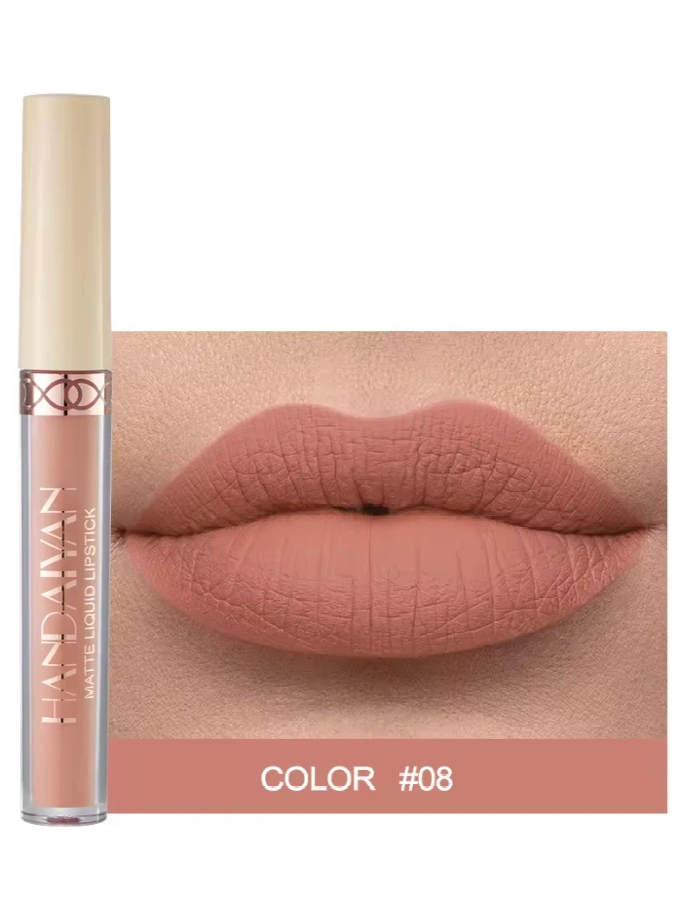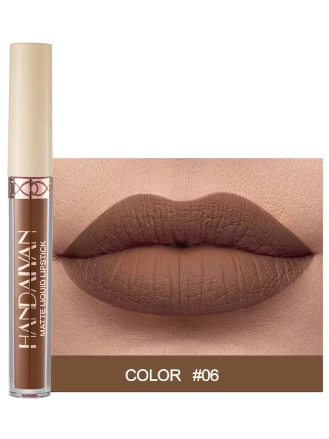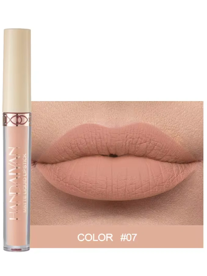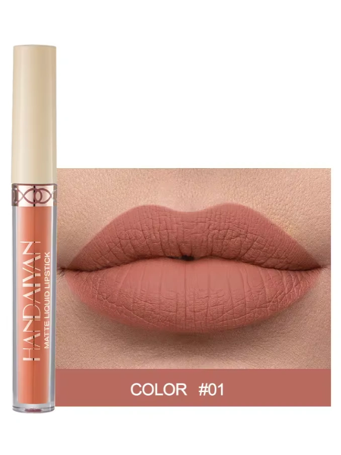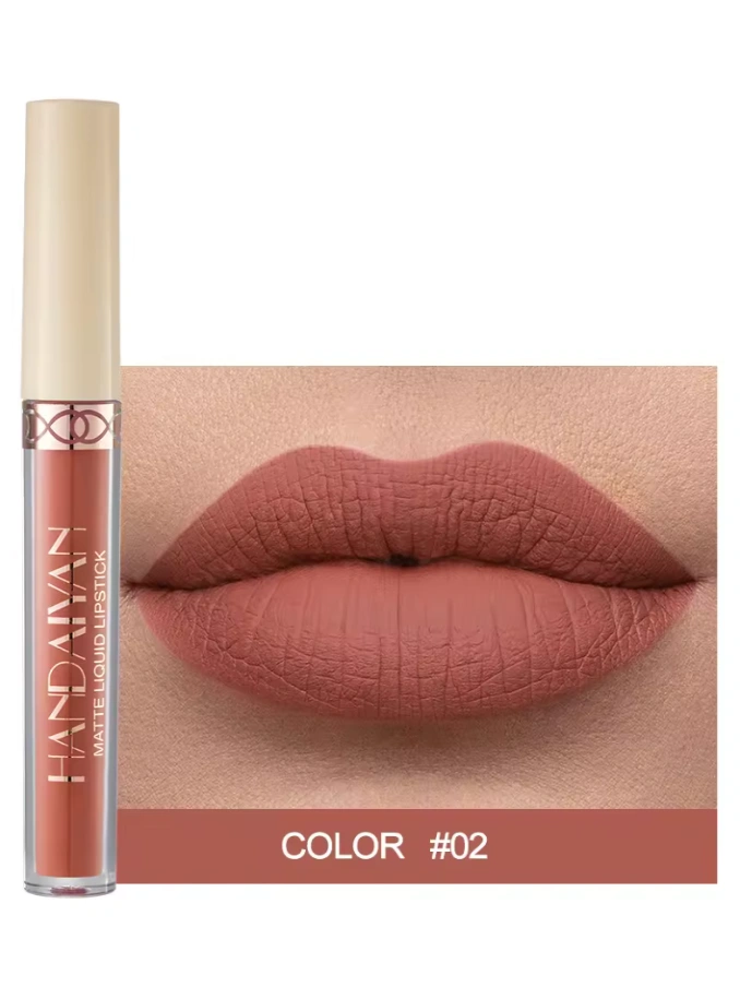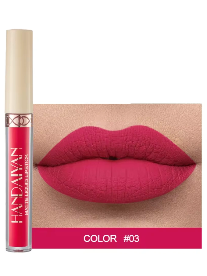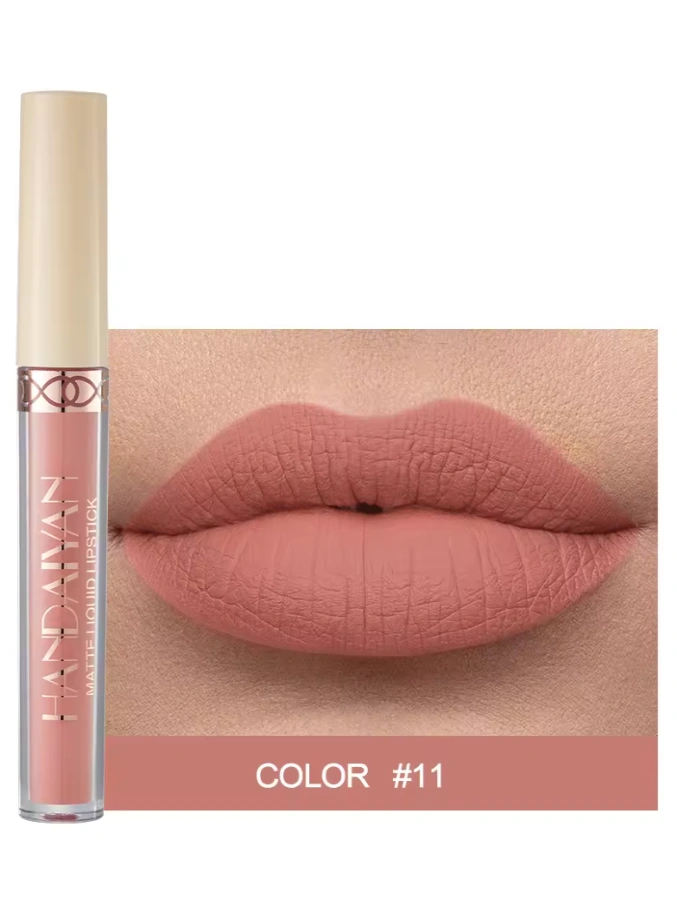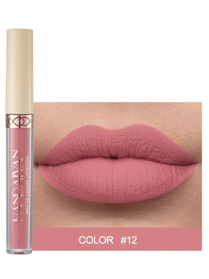 The HANDAIYAN Long Lasting Matte Lipglaze is a fashionable choice for daily lip makeup. This waterproof, non-stick cup matte liquid lipstick comes in a regular size with a net weight of 1g. Certified by MSDS and made with mineral ingredients, it offers a liquid form that’s easy to apply. The product boasts a variety of 12 colors, providing a stylish and high-quality option for enhancing the beauty of your lips with long-lasting charm.