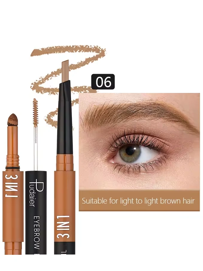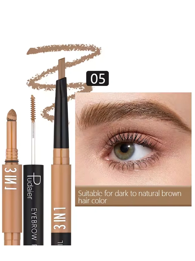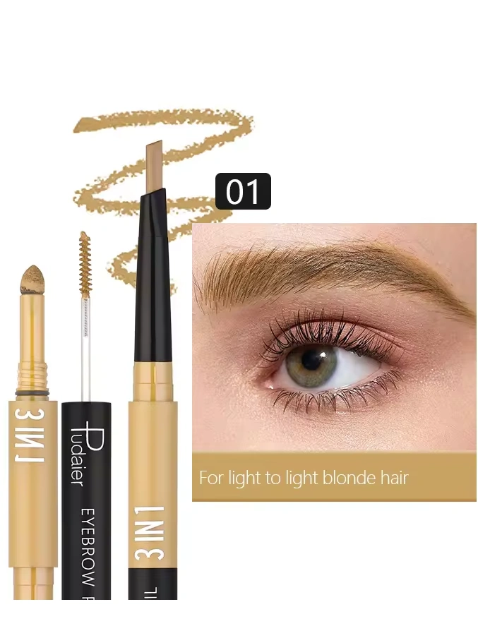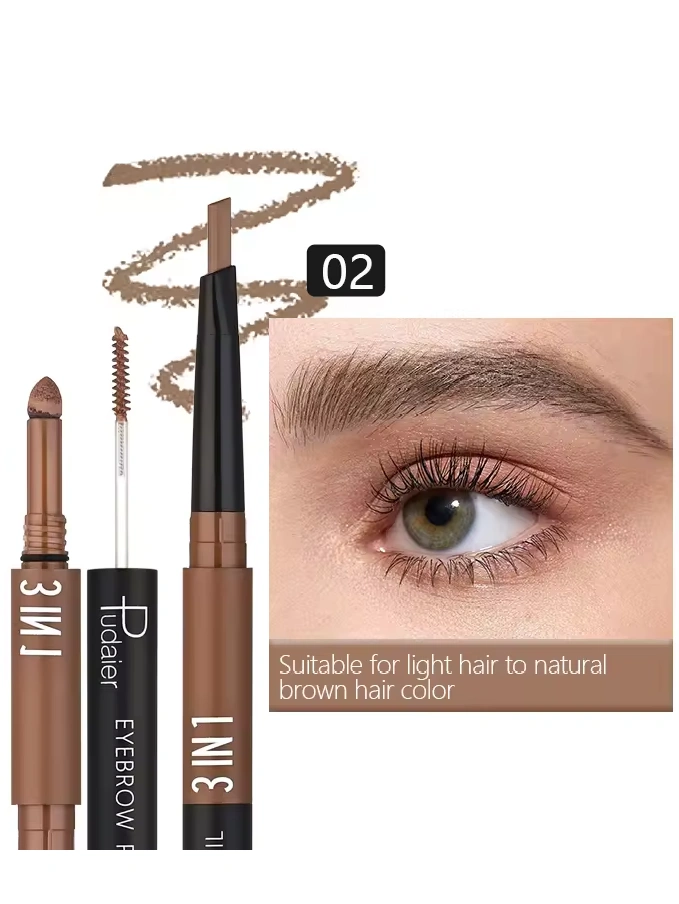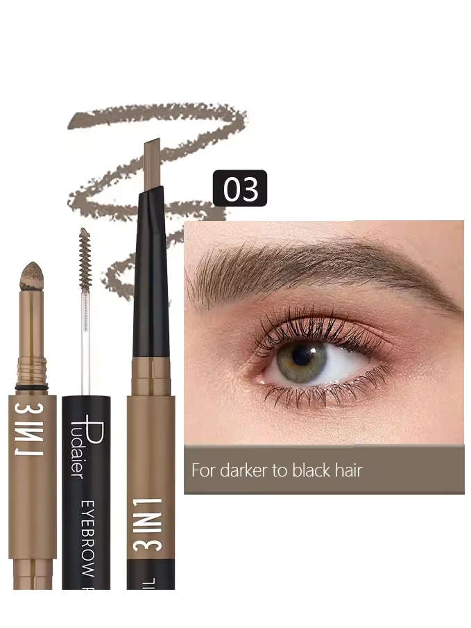 Pudaier 3-in-1 Double Head Eyebrow Pencil Natural Long-lasting Easy Color Waterproof Anti-sweat Brow Dye Eyebrow Powder