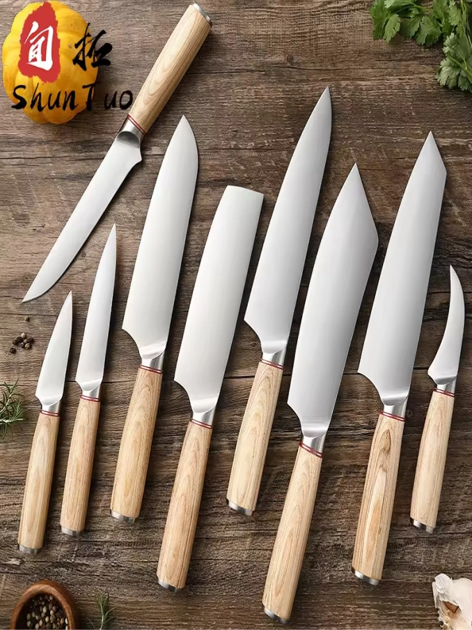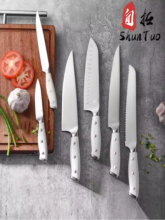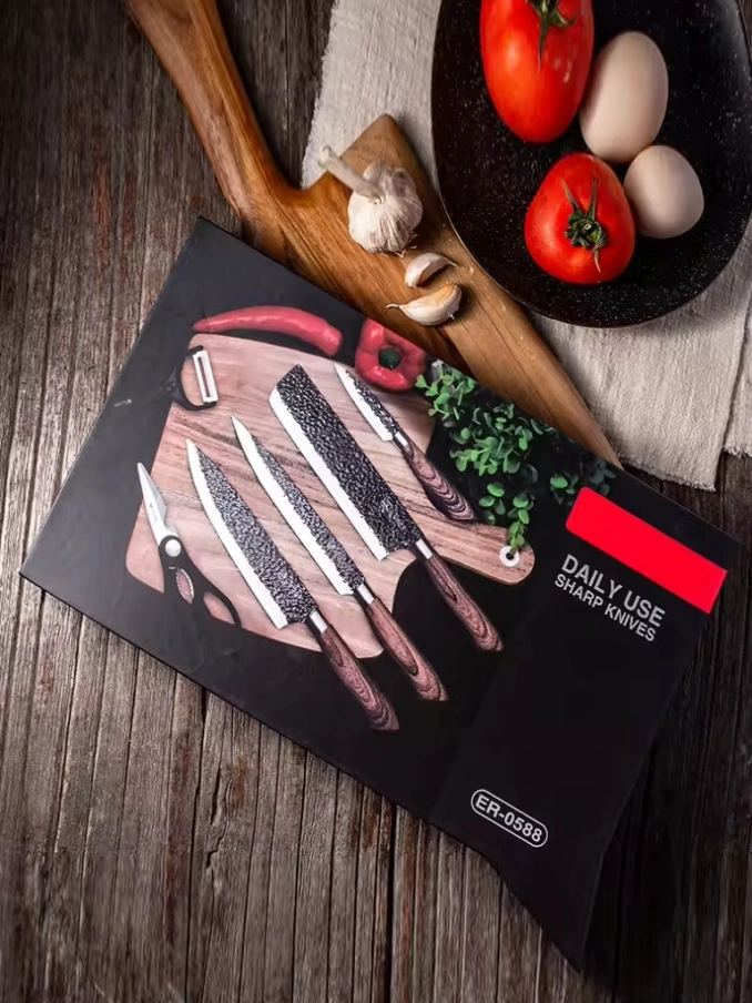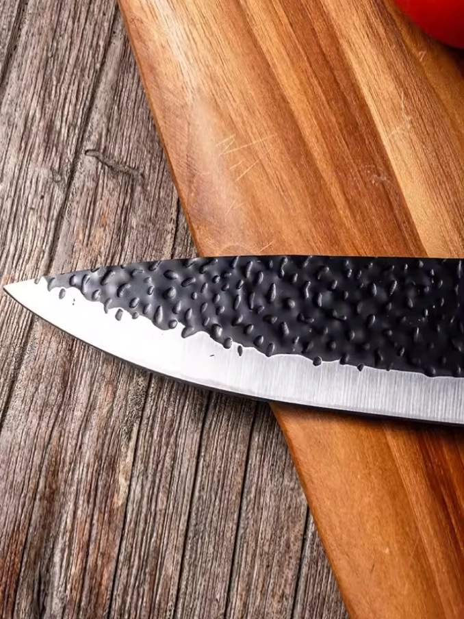 The Santoku knife's unique design features a straight edge and a slightly curved blade, allowing for precise slicing, dicing, and mincing of fruits, vegetables, meats, and more. Whether you're preparing stir-fries, salads, or sushi, this knife delivers consistently clean and uniform cuts for professional-quality results every time.