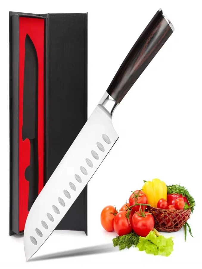 7-inch Stainless Steel Kitchen Santoku Knife, a versatile and indispensable tool for every culinary enthusiast and professional chef. Crafted with precision and durability in mind, this Santoku knife is designed to handle a wide range of kitchen tasks with ease and efficiency.