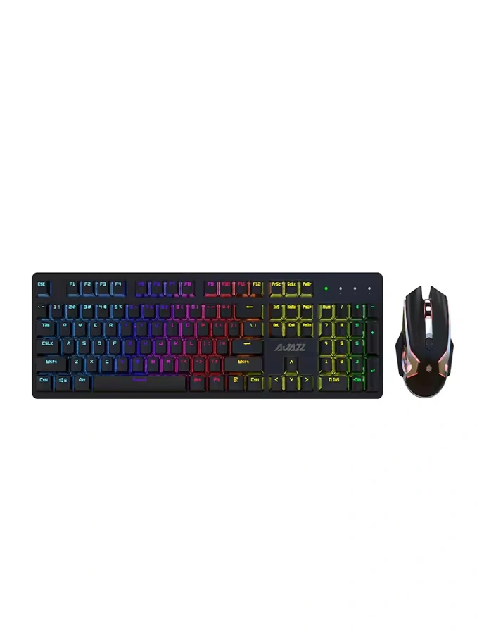 Ajazz RGB Backlit Mechanical Gaming Keyboard and Mouse Combo, a powerhouse duo engineered to enhance your gaming performance and elevate your desktop aesthetics. With its striking design, customizable RGB lighting, and ergonomic features, this combo is the perfect choice for gamers seeking style and functionality.