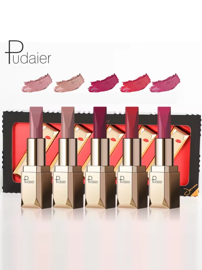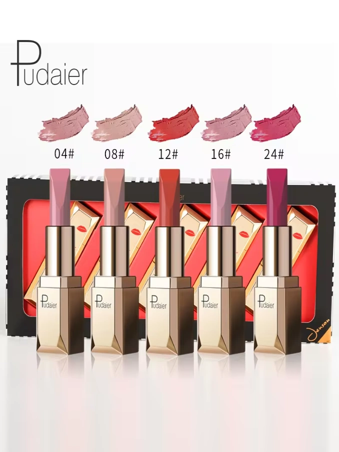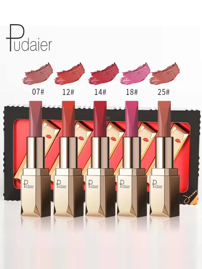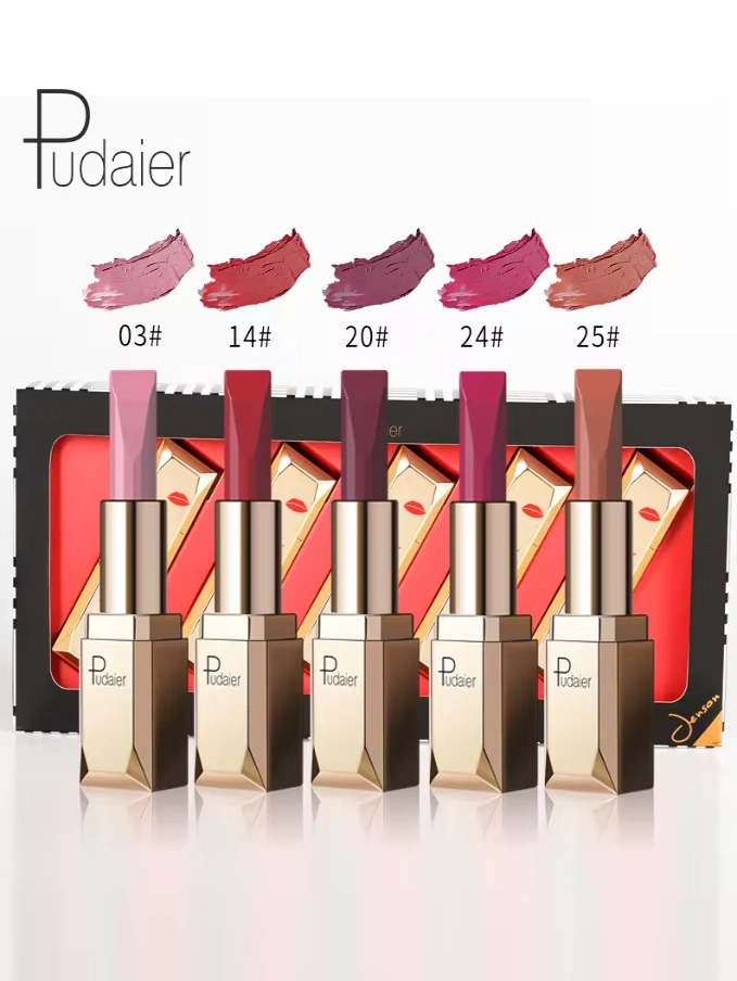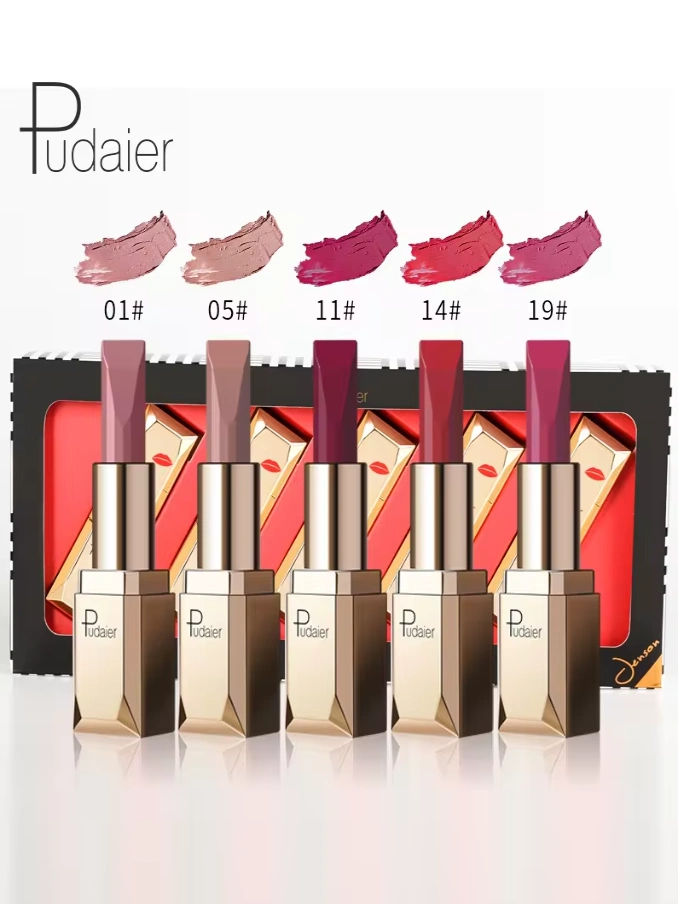 The Pudaier Color Lipstick Makeup is a waterproof, mineral-based lipstick designed for lips. This MSDS certified product comes in a regular size with a net weight of 1g. It’s a liquid form lipstick that provides a vibrant color, enhancing the beauty of your lips. The product is also known as ‘Cosmetic Matte Lipstick’. It’s perfect for enhancing a lady’s lips beauty makeup. Experience the allure of a beautiful makeup look with Pudaier’s innovative lipstick solution.