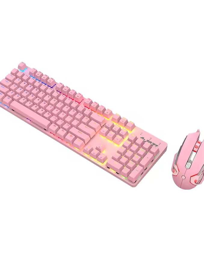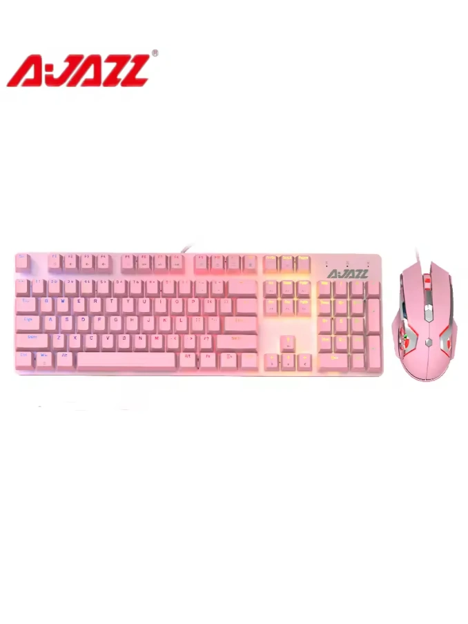 Ajazz 104-Key Pink Mechanical Keyboard and Mouse Wired Combo, a stunning fusion of style and performance designed to elevate your computing experience with precision, customization, and aesthetic appeal. Boasting a vibrant pink color scheme, mechanical keyboard switches, and programmable mouse buttons, this combo offers both functionality and flair for work and play.