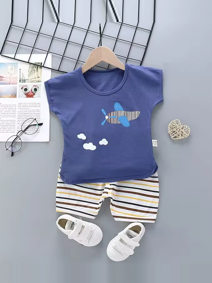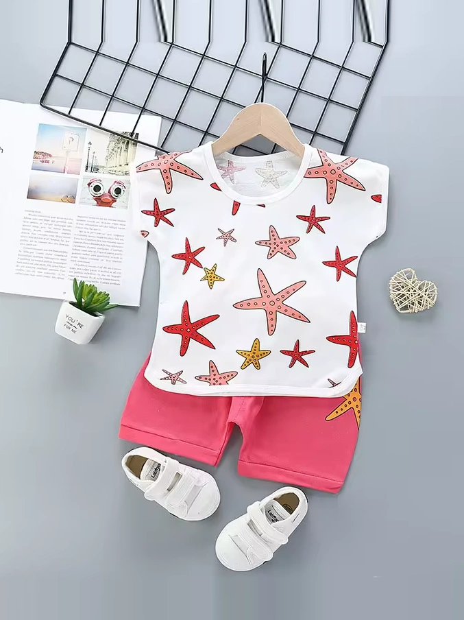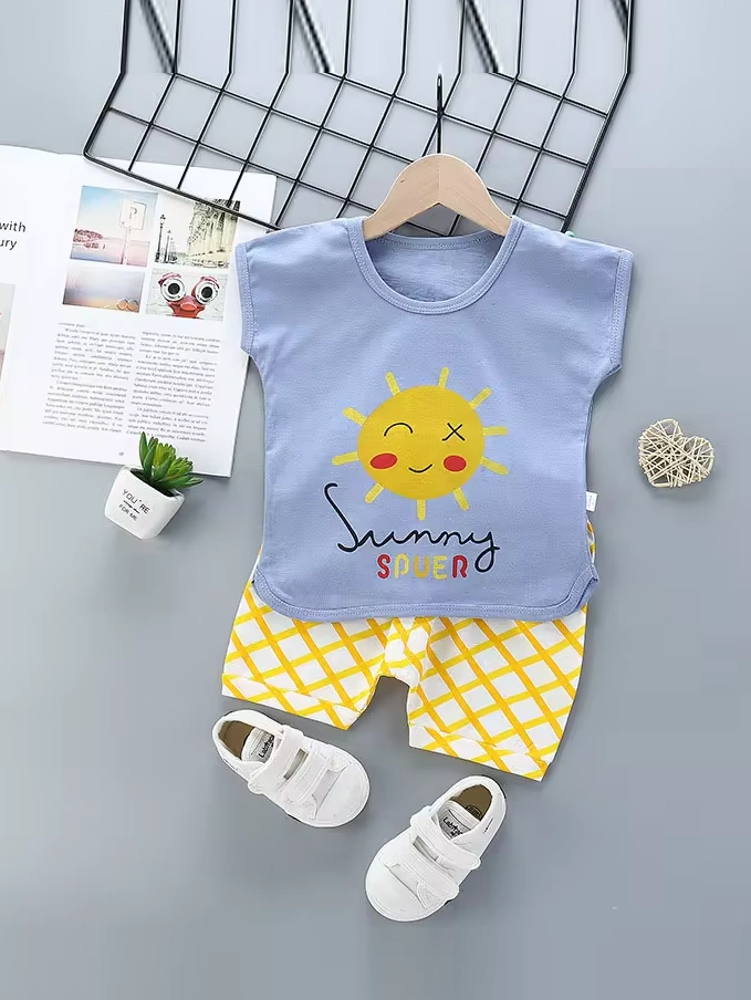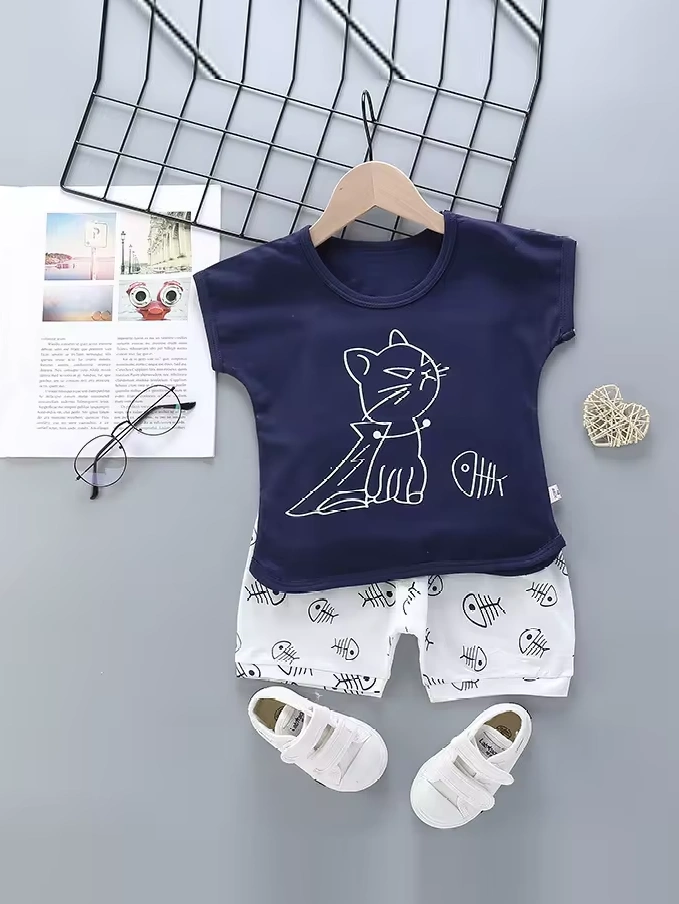 Summer Children Suits For Girls Short Sleeve Sets For Baby Boys Two Clothes T-shirt + Shorts Sets Toddler Clothing