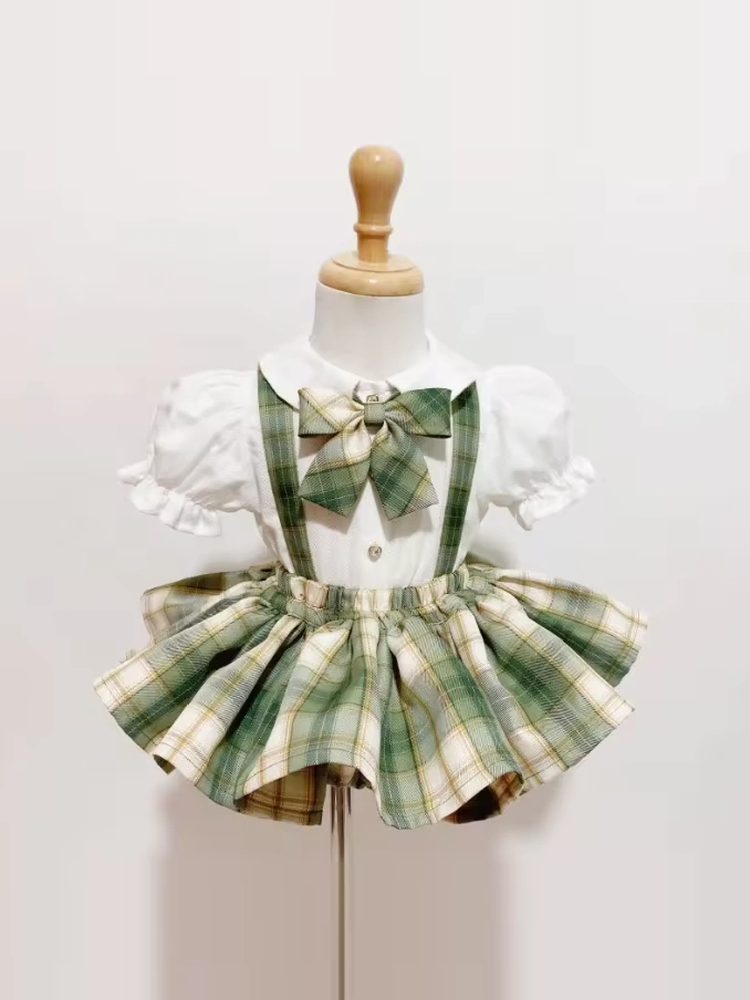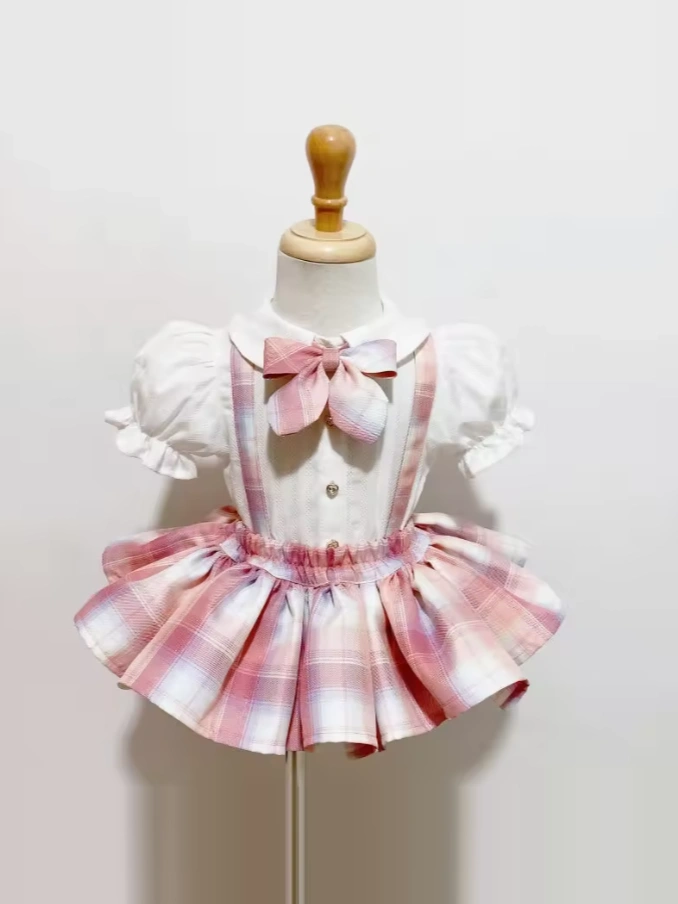 Baby Girl Formal Clothes Set White Shirt+Suspender Skirt+Bow Tie 3PCS Summer Child Clothing Set Outfit Baby Clothes Suit 1-7Y