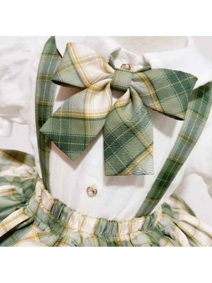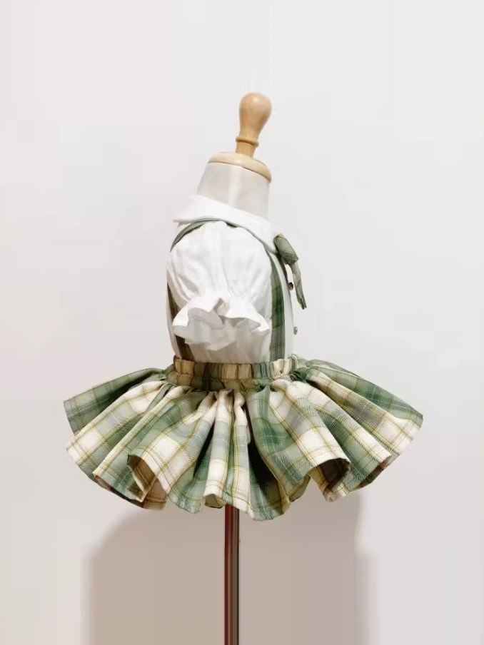 Baby Girl Formal Clothes Set White Shirt+Suspender Skirt+Bow Tie