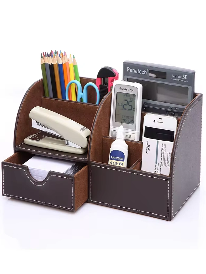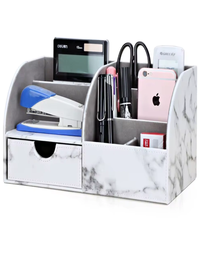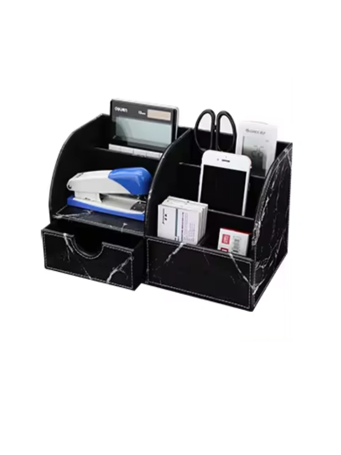 Garden Multifunctional Desk Organizer Marble Leather Storage Box
