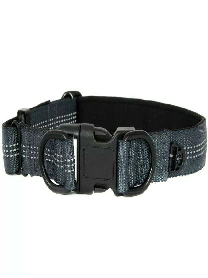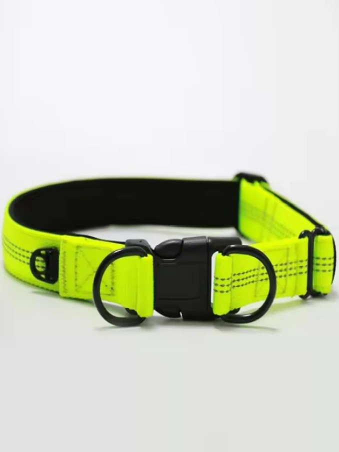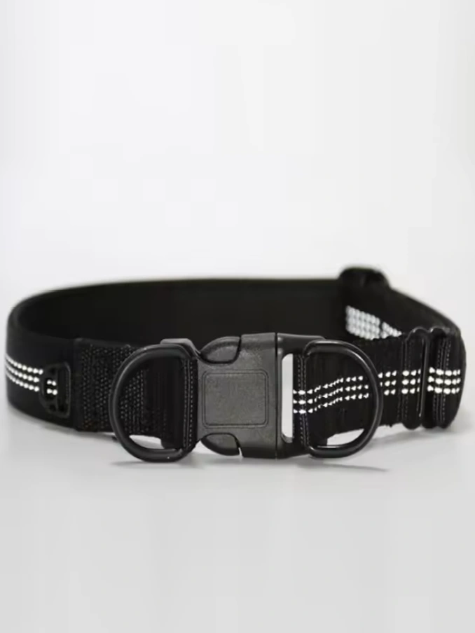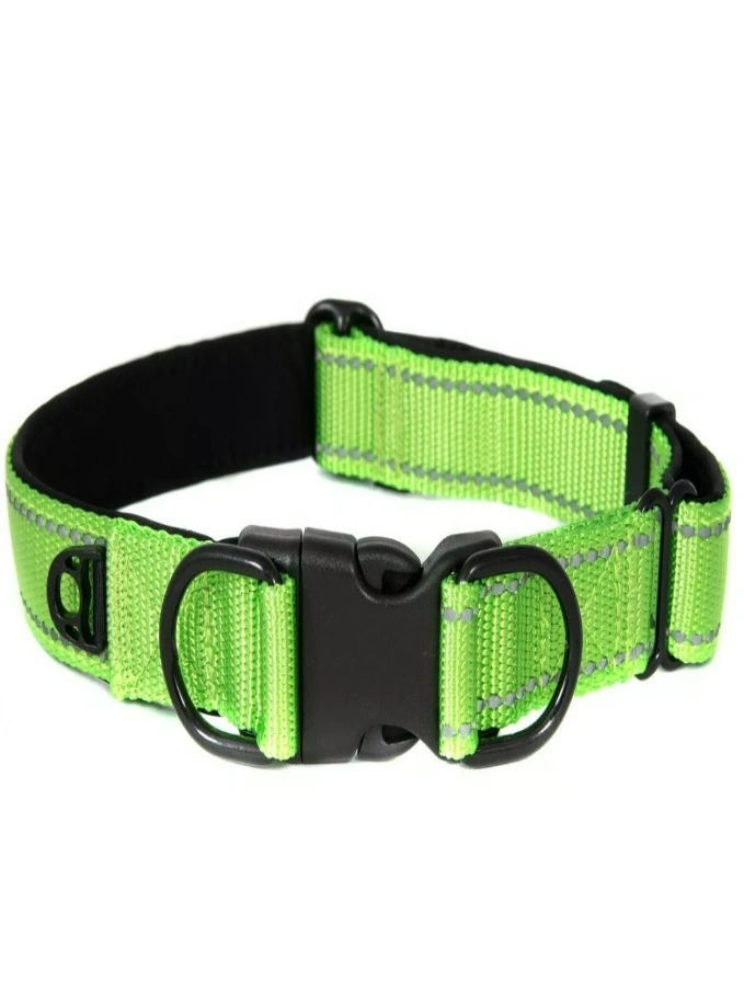 The Safety Buckle Double-D Ring Reflective Dog Collar is a cool and practical accessory for your dog. Made from solid nylon, this collar is durable and comfortable for your pet. It features a reflective design for added visibility and safety during walks, especially in low light conditions. The collar is decorated with ribbons, adding a touch of style to your pet’s look. The double-D ring and safety buckle ensure a secure fit and easy attachment of a leash. This collar is not only functional but also adds a fashionable touch to your dog’s appearance. Please remember to choose the correct size for your dog to ensure comfort and safety.