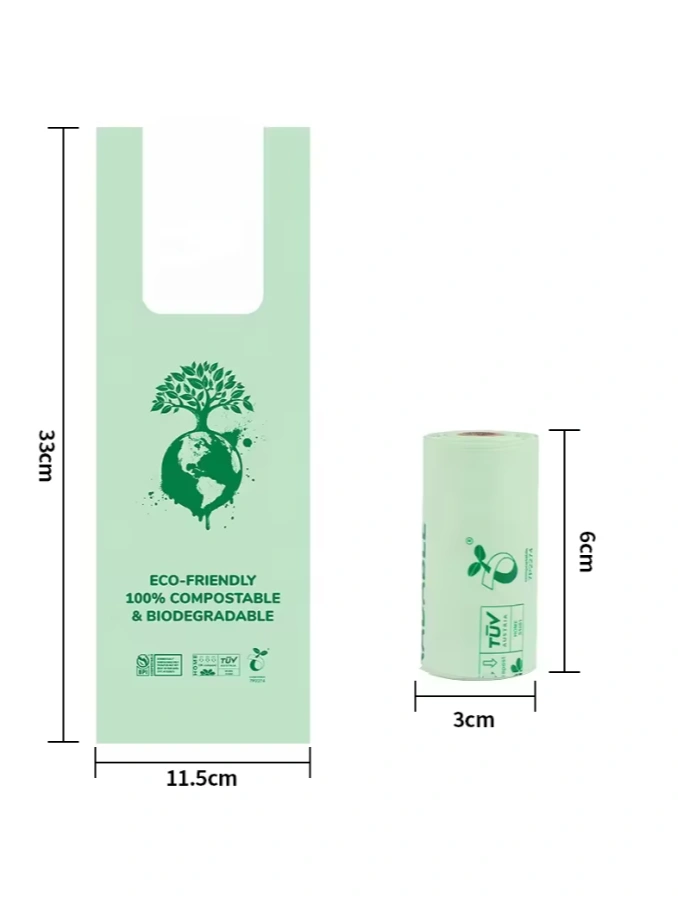 These stocked dog poop bags are made from corn starch, making them an environmentally friendly choice for pet owners. They are biodegradable and designed for dogs. The bags have a size of 23*33cm, but there’s an option for a customized size.