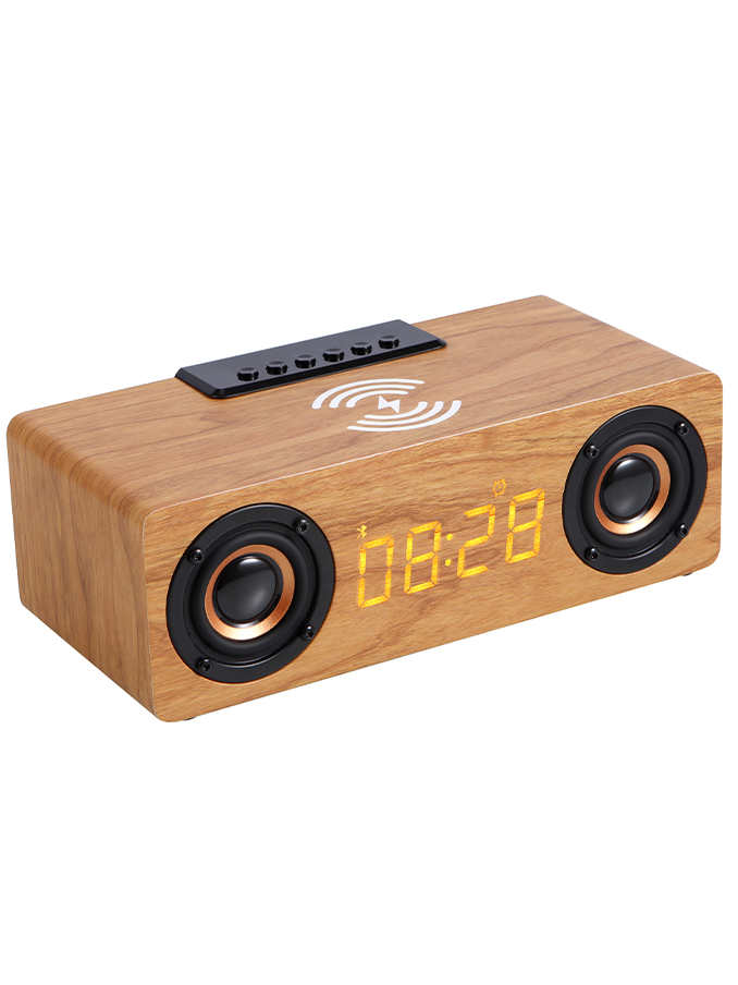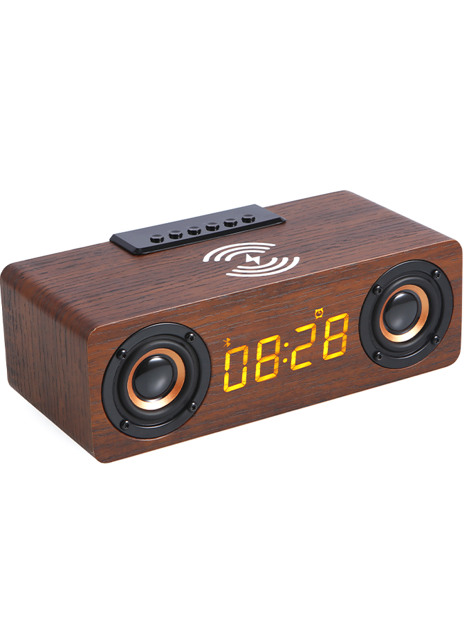 Whether you’re looking for a bedside companion, a portable speaker, or a wireless charger, the K1 Wood Bluetooth Speaker Alarm Clock has you covered!