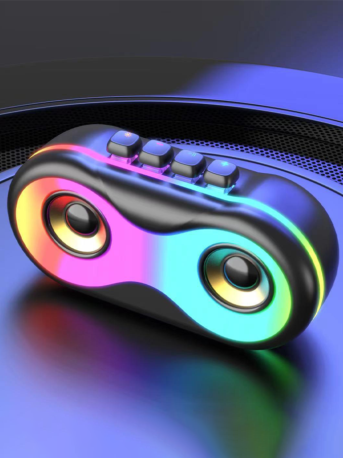 A Bluetooth audio RGB color light Bluetooth speaker that’s customized for outdoor use and features a portable double speaker subwoofer: