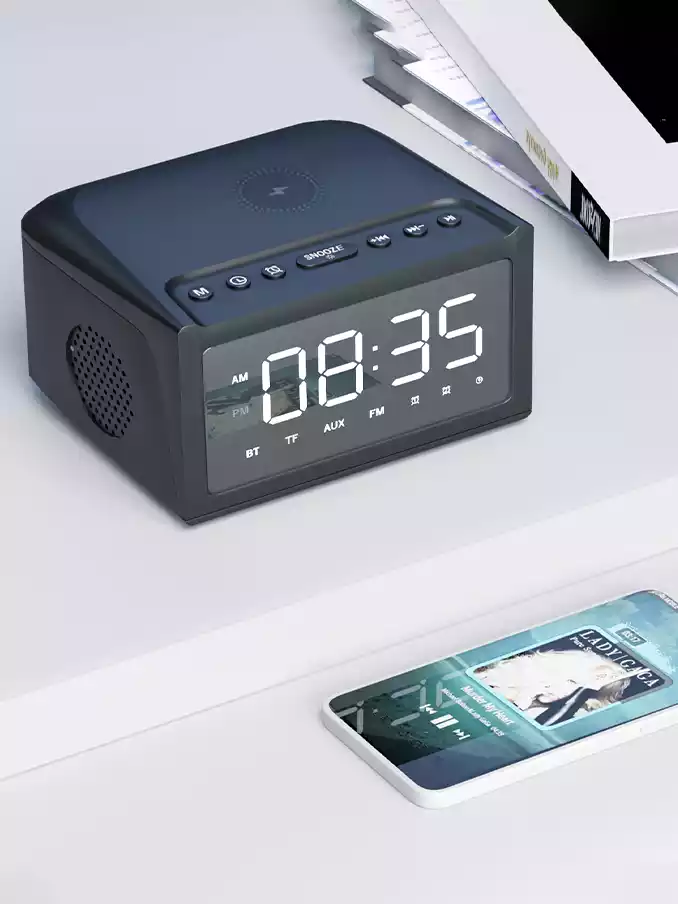 The New HF18 Wireless Charging Speaker FM Radio LED Display Alarm Clock Multifunction Digital Alarm Clock Bluetooth Speaker 3 in 1: