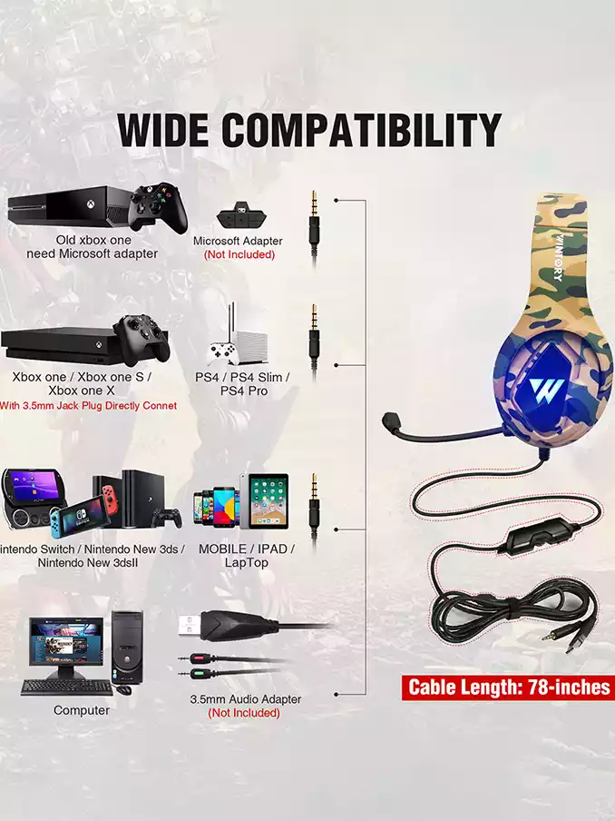 Compatibility: The M1 Camouflage Gaming Headphones are compatible with PS4, Xbox One, and PC platforms.